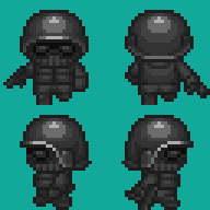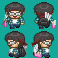 - 4方向歩行3パターンアニメ ※ボスのみ歩行パターンはなく、正面向き待機アニメのみ
